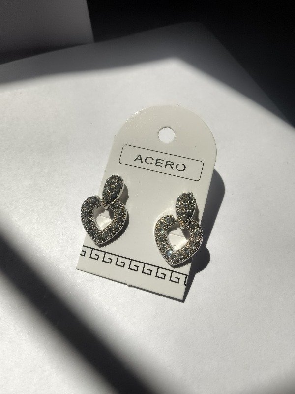Aros corazón colgante strass