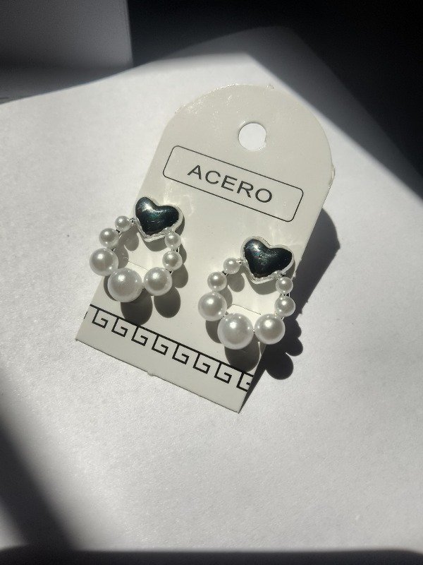 Aros corazón con perlas