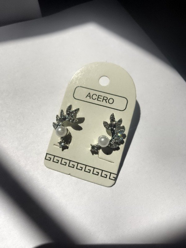 Aros hojitas strass con perlas