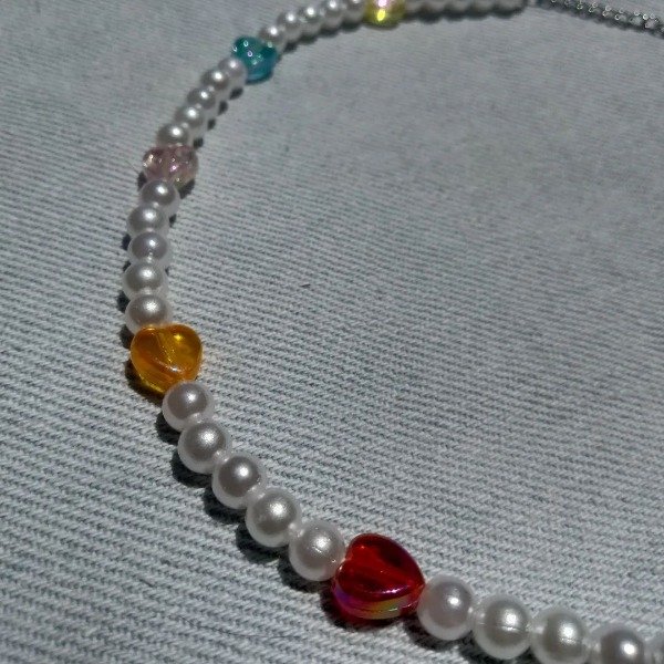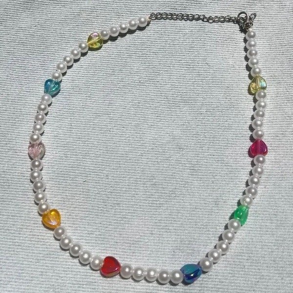 Collar perlas corazones de colores